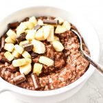 - Prep ahead: Measure/prep everything ahead of time (oats, milk/water, bananas, cocoa powder, etc) for quick assembly in the morning. Let it cook while you get ready for your day.