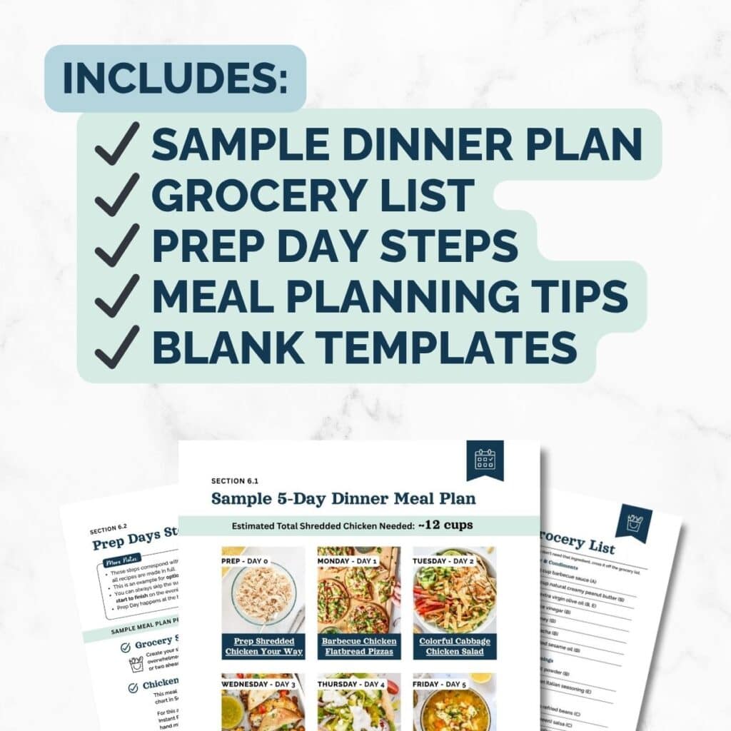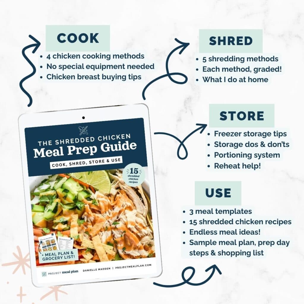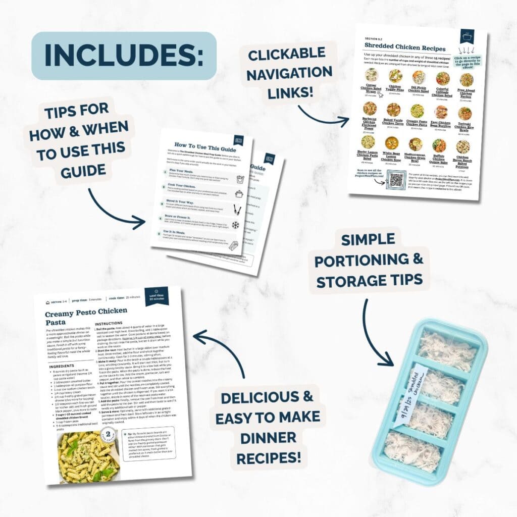 A flexible meal prep system that will help you easily turn shredded chicken into endless dinner ideas, without the stress or guesswork.
